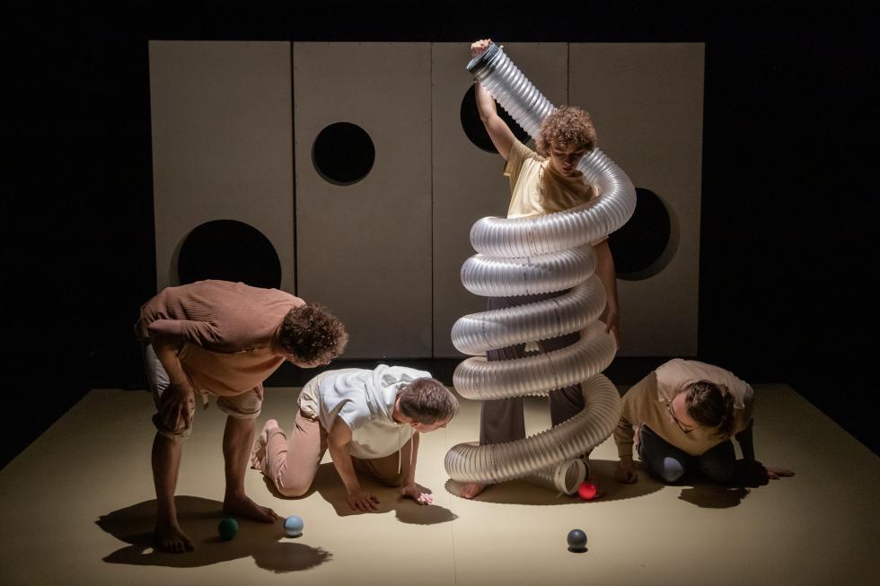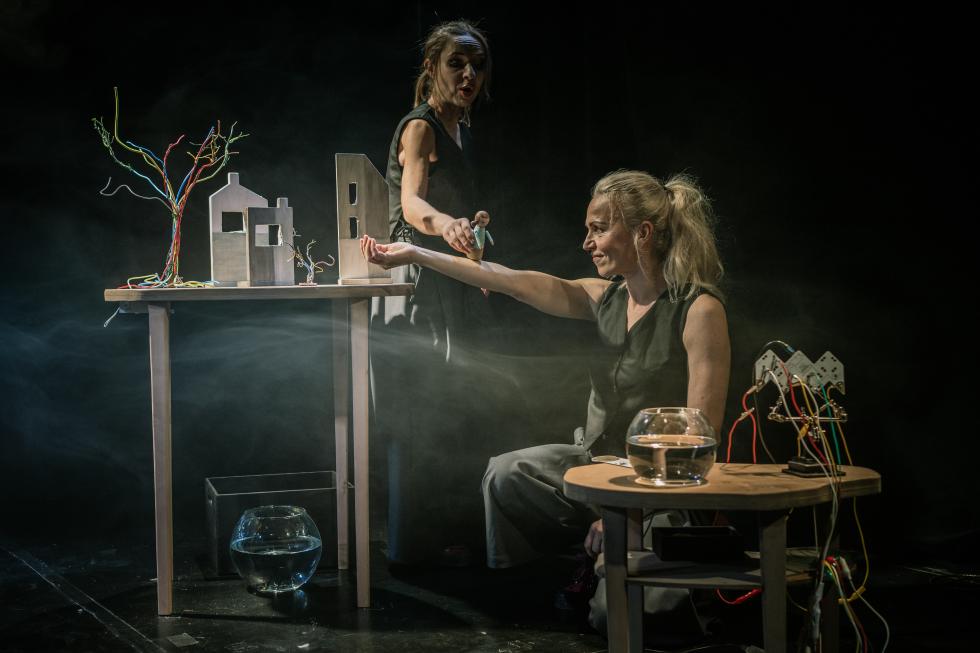 Ivana Macková: Technológia musí predovšetkým slúžiť idei – vtedy inscenácia funguje. Najradšej mám, keď zo skúmania konkrétnej témy prirodzene vzíde, aká forma, technológia či materiál budú na vytvorenie objektu, bábky najvhodnejšie a najvýpovednejšie. Samozrejme si nemyslím, že toto je jediná správna cesta, ako môže dielo vzniknúť. Sú aj tvorcovia, ktorí sú očarení konkrétnou technológiou a na jej základe vymyslia spôsob, ako ju na javisko dostať. Oba princípy sú legitímne a môžu divákovi priniesť hlboký zážitok. Nedávno sme s režisérkou Monikou Kováčovou pracovali na inscenácii pre najmenších A prečo? v Bábkovom divadle na Rázcestí. Monika prišla so zariadením PlayTron a s nápadom ho do inscenácie zakomponovať, lebo chcela pracovať so zvukmi naživo. PlayTron je malý kontrolér, ktorý umožňuje premeniť akýkoľvek objekt s vodivými vlastnosťami na hudobný nástroj. Chcela som toto zariadenie prepojiť so scénografiou a s celým vizuálom inscenácie, a tak som vymyslela, že jedno z dvoch hlavných prostredí inscenácie (mesto) bude z väčšej miery tvorené z káblov.